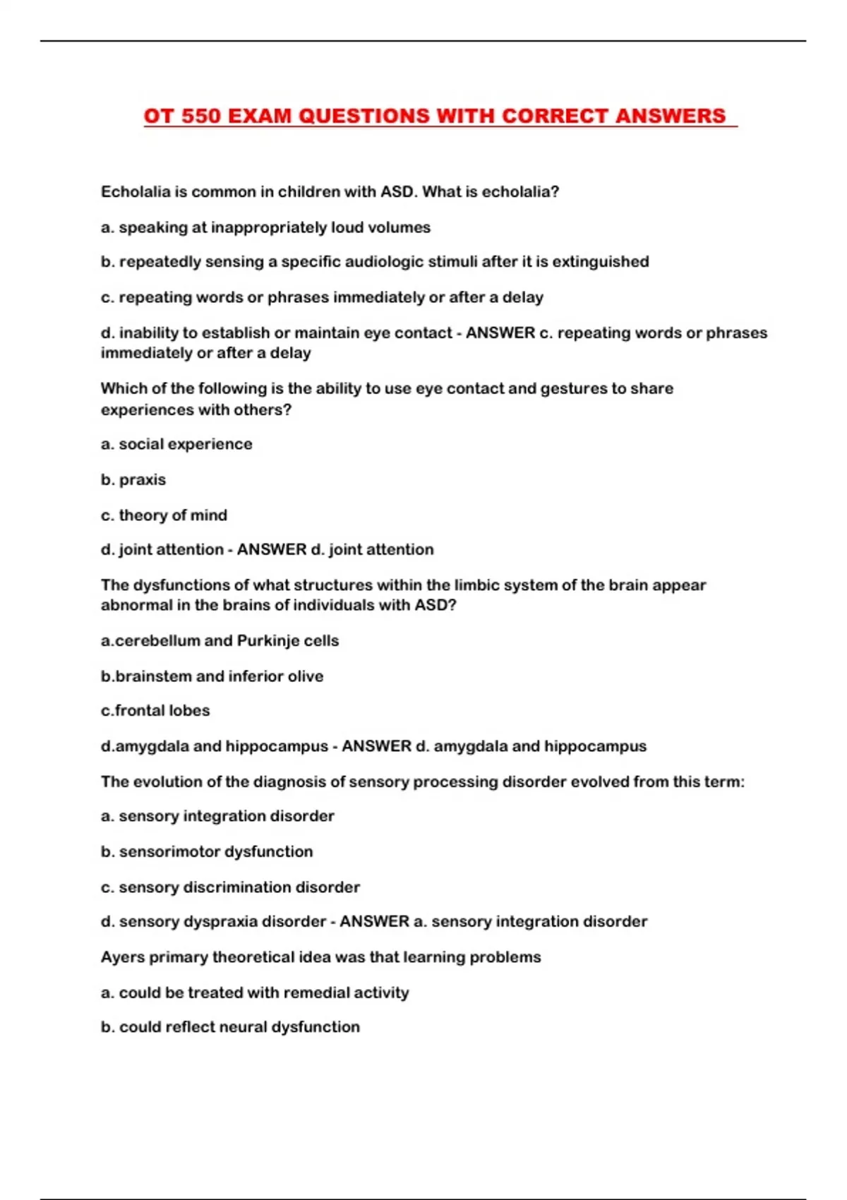 OT 550 EXAM QUESTIONS WITH CORRECT ANSWERS