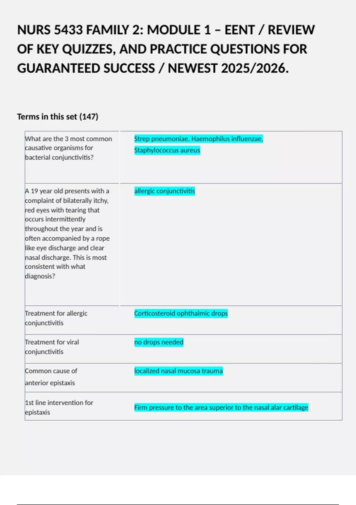 EENT NURS 5433 (MOD 1, UTA: FNP 2 STUDY GUIDE) COMPLETE ACCURATE QUIZZES WITH VERIFIED ANSWERS / Terms in this set (112) Glaucoma management -prevention (first): IOP measured in yearly eye exams, avoid OTC vasoconstrictive ocular agents and an 2 Exam (elaborations) MODULE 3 NURS 5433 / EXPERT STRATEGIES, REVIEW OF KEY QUIZZES, AND PRACTI