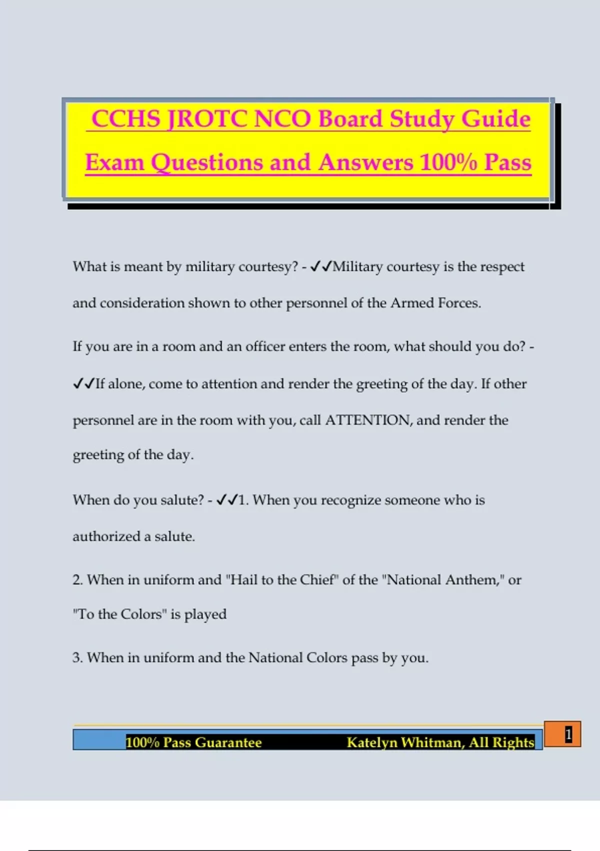CCHS JROTC NCO Board Study Guide Exam Questions and Answers 100% Pass
