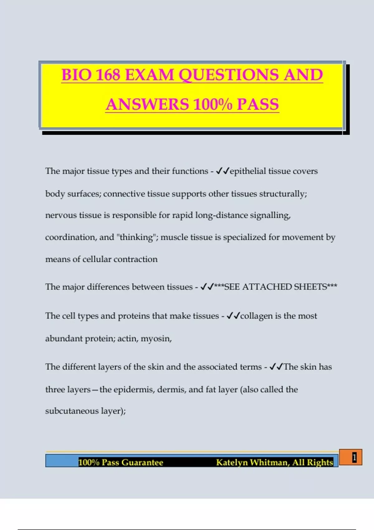 BIO 168 EXAM QUESTIONS AND ANSWERS 100% PASS