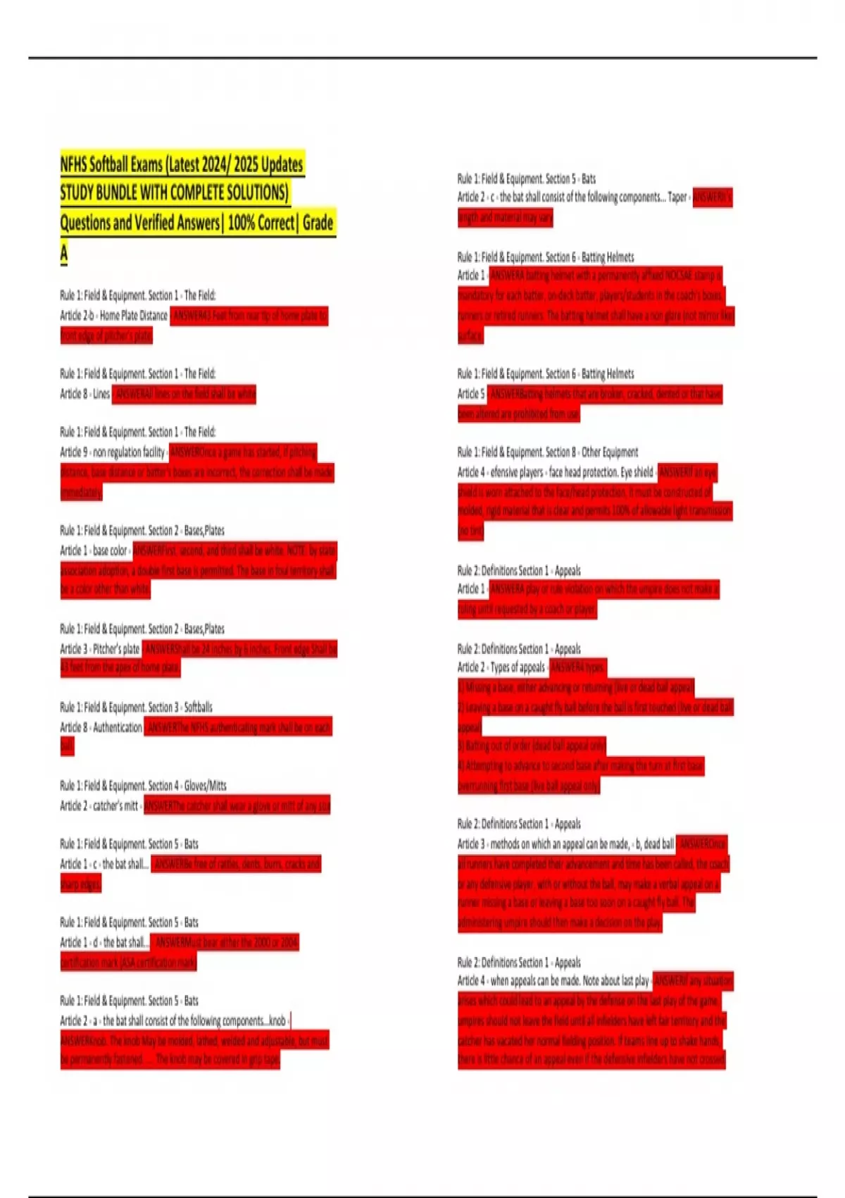 NFHS SOFTBALL ACTUAL EXAM QUESTIONS AND ANSWERS UPDATED 2025 NFHS SOFTBALL ACTUAL EXAM QUESTIONS AND ANSWERS UPDATED 2025 NFHS SOFTBALL ACTUAL EXAM QUESTIONS AND ANSWERS UPDATED 2025
