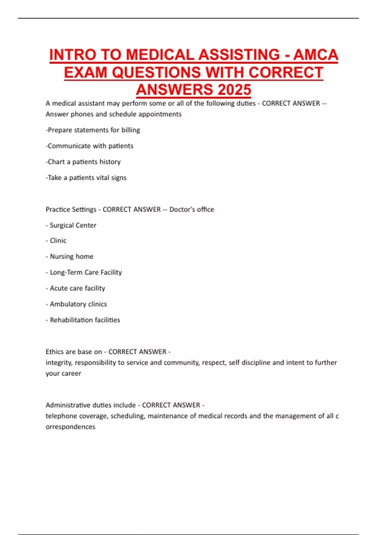 INTRO TO MEDICAL ASSISTING - AMCA EXAM QUESTIONS WITH CORRECT ANSWERS 2025