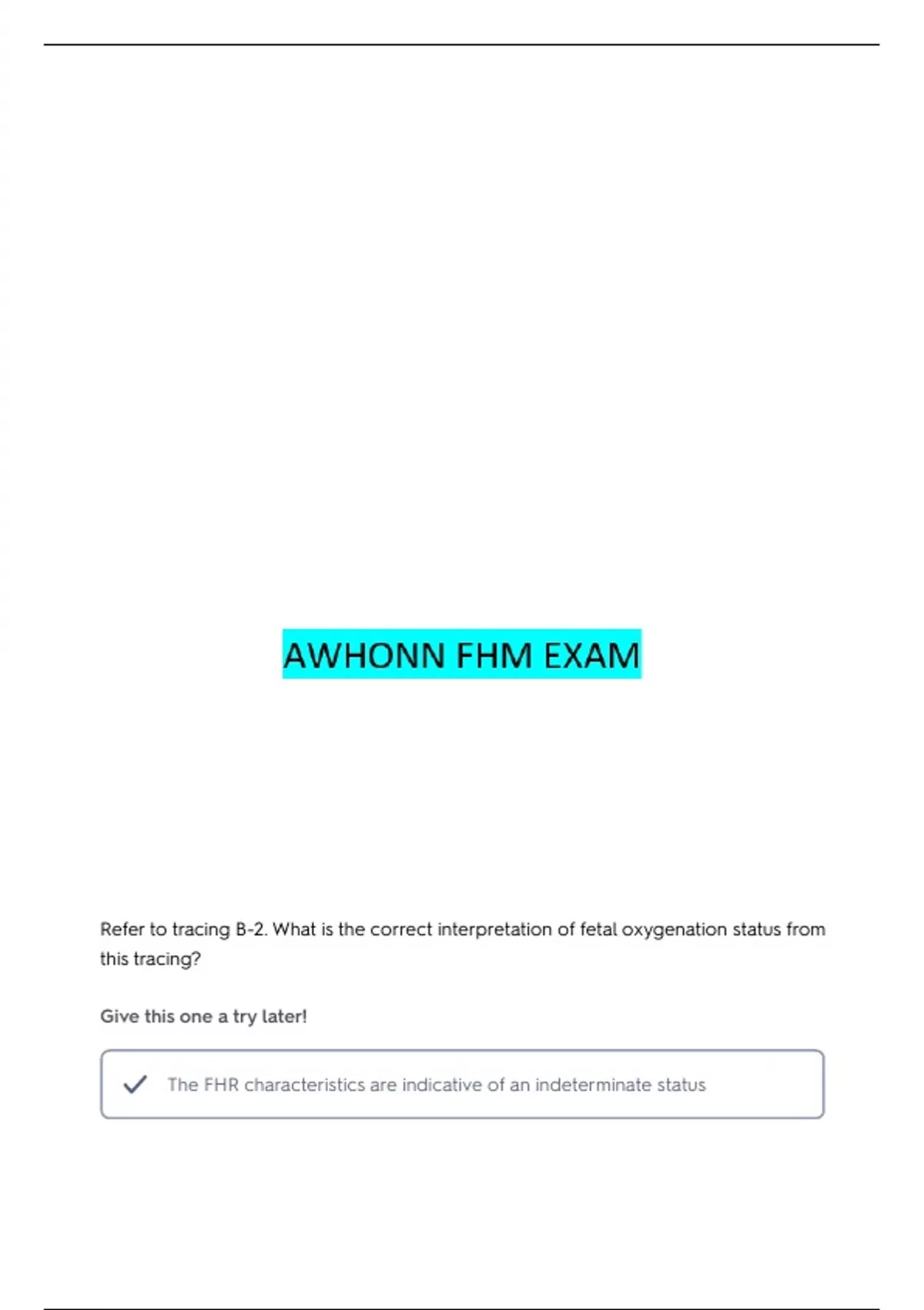 AWHONN ADVANCED FHM COURSE EXAM ANSWERS SOLVED BY EXPERT