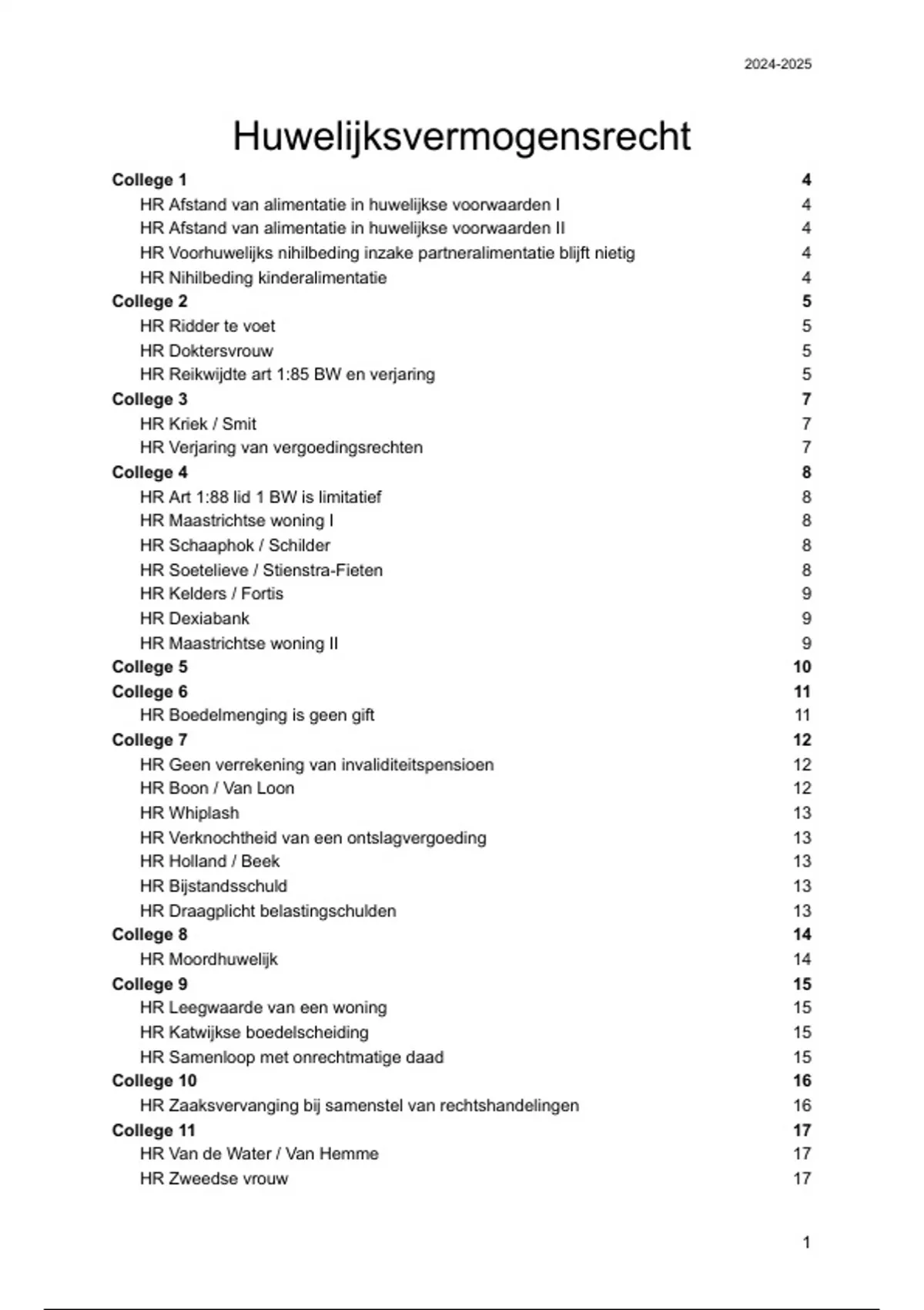 Alle hoorcollege aantekeningen huwelijksvermogensrecht