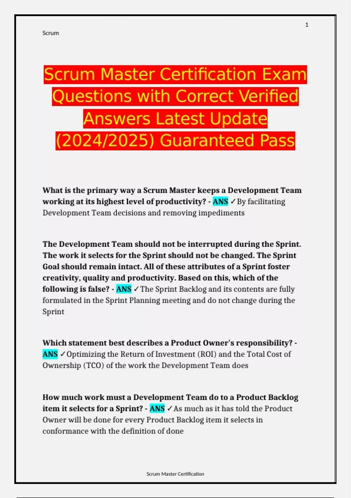 Scrum Master VMEdu ACTUAL Exams STUDY Questions with Correct Verified Answers Latest Update PACKAGE DEALScrum Master VMEdu ACTUAL Exams STUDY Questions with Correct Verified Answers Latest Update PACKAGE DEALScrum Master VMEdu ACTUAL Exams STUDY Questions with Correct Verified Answers Latest Update PACKAGE DEALScrum Master VMEdu ACTUAL Exams