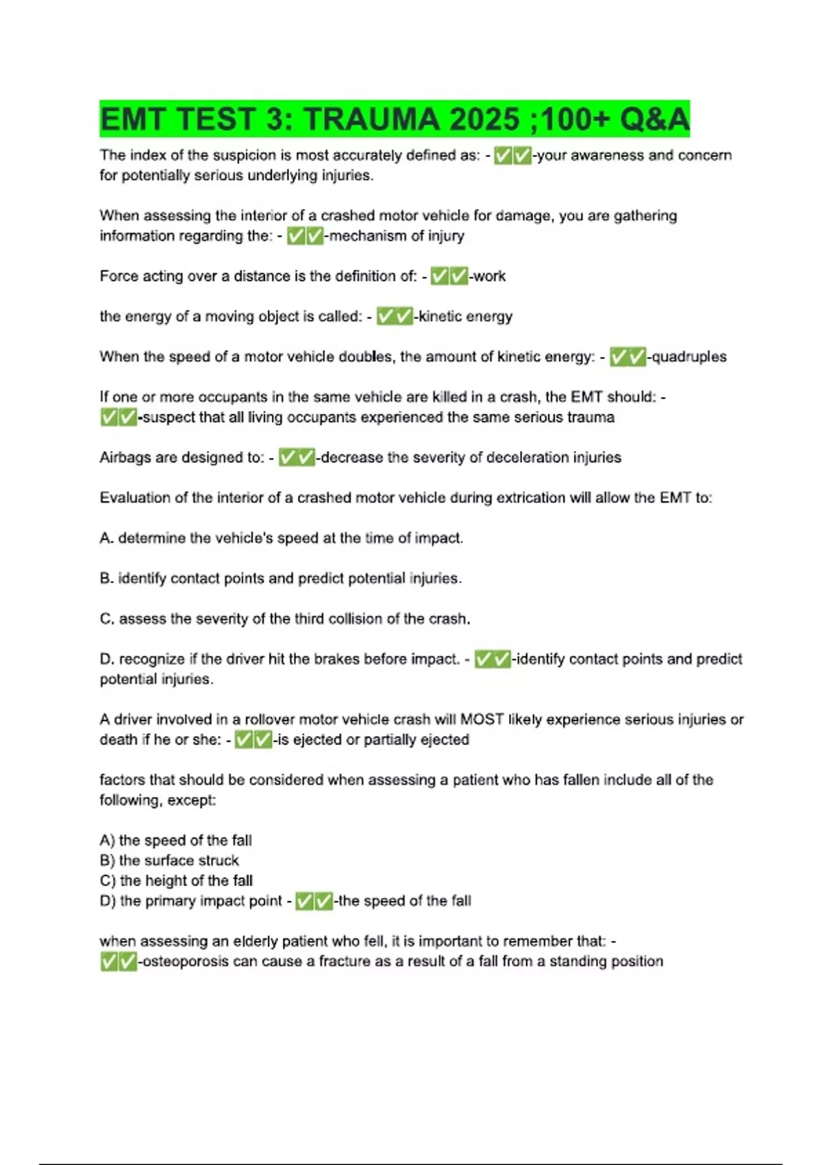 4.02 Trauma Study guide for unit 4 (trauma) exam Course Emergency Medical Technician (EMT 101) (LATEST 2025/2026 UPDATE) ACTUAL EXAM WITH 100% VERIFIED QUESTIONS AND CORRECT SOLUTIONS