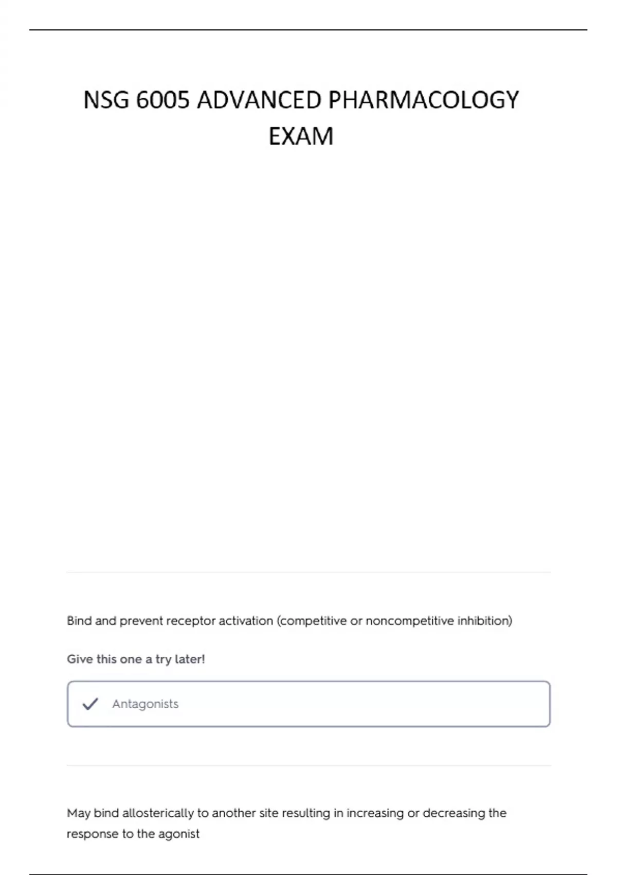 NSG6005 ADVANCED PHARMACOLOGY QUIZ 1 EXAM QUESTION & CORRECT VERIFIED ANSWERS