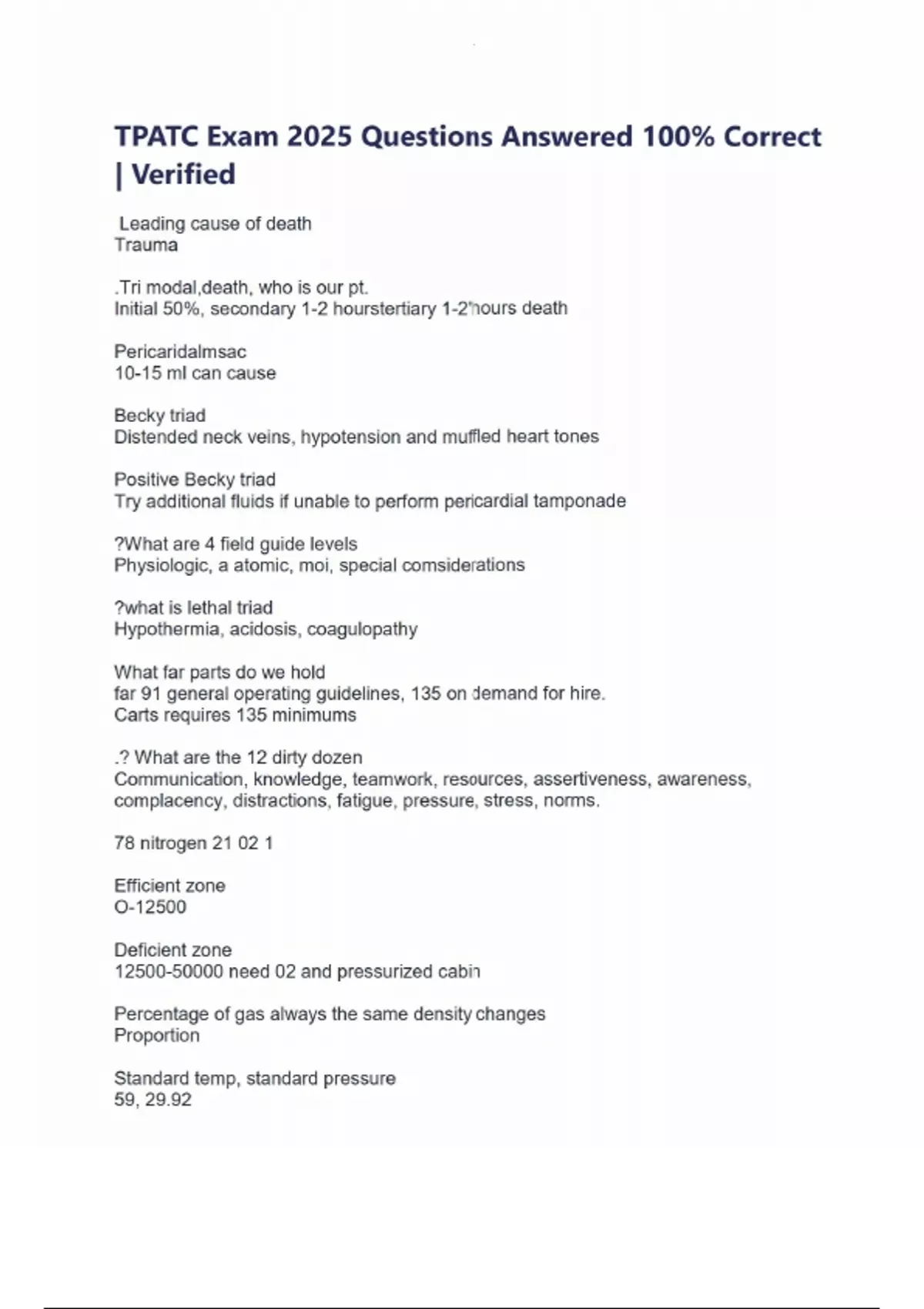 TPATC Exam 2025 Questions Answered 100% Correct | Verified