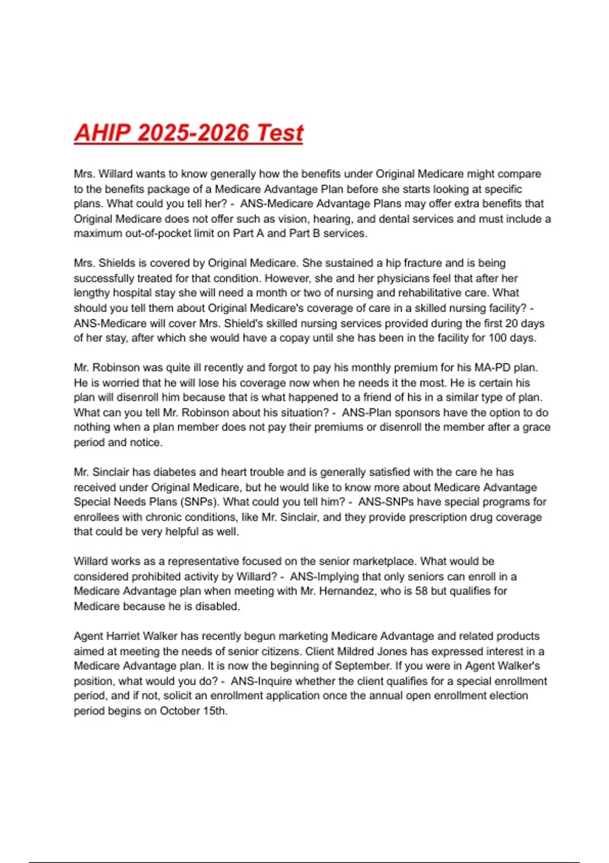 AHIP Test Questions with correct Answers( A+ GRADED 100% VERIFIED).