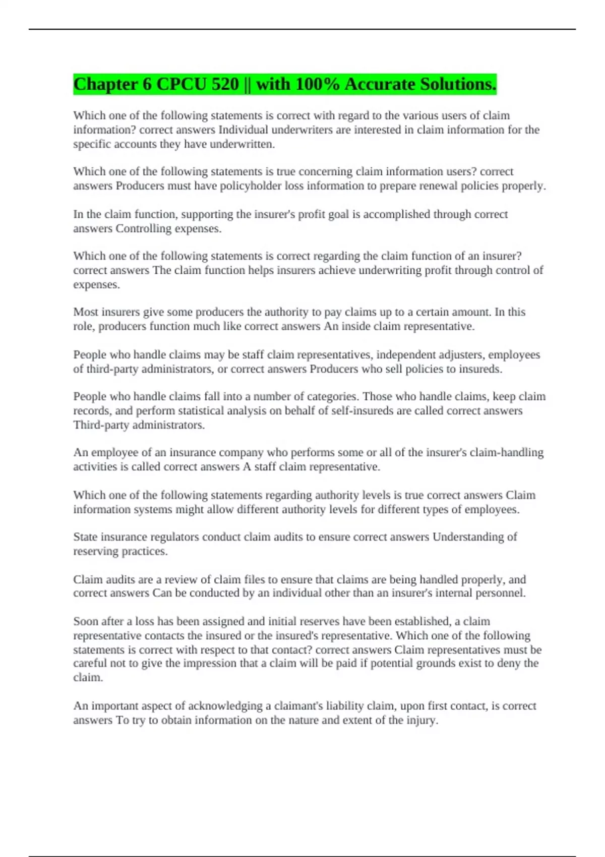 Chapter 8 CPCU 520 || Questions and 100% Accurate Answers. CPCU 520; Chapter 9 Evaluating Information Technology Needs || (Needed to Pass) Confirmed A+. CPCU 520, Chapter 4 || Questions and 100% Verified Answers. CPCU 520 Final Review || All Answers Are Correct 100%. CPCU 520 Chapter 5 || All Questions Answered Correctly. CPCU 520 - Expanding Capac