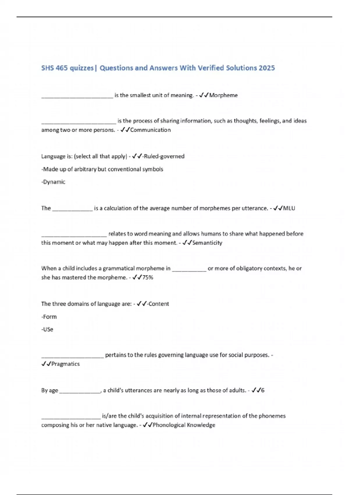 PACKAGE DEAL || SHS 465 Exams With Verified Solutions 2025