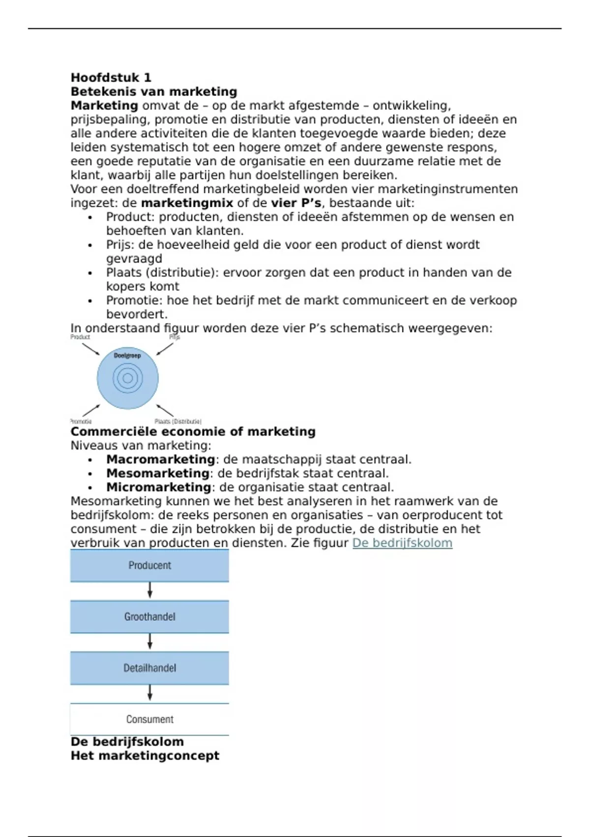 Samenvattingen inleiding tot de marketing 6e editie & retailmarketing 8e editie