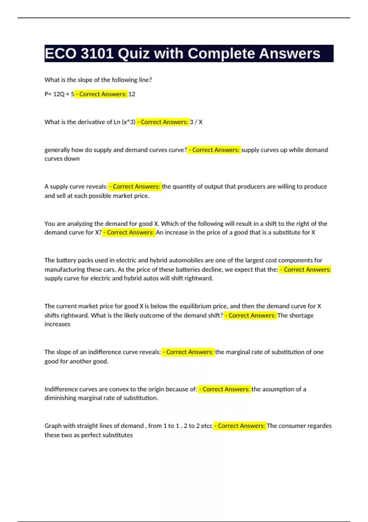 ECO 3101 Quiz with Complete Answers