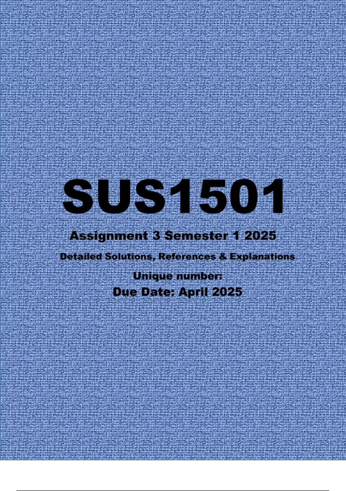 SUS1501 Assignment 3 (ANSWERS) Semester 1 2025 - DUE April 2025 with 100% Accuracy.