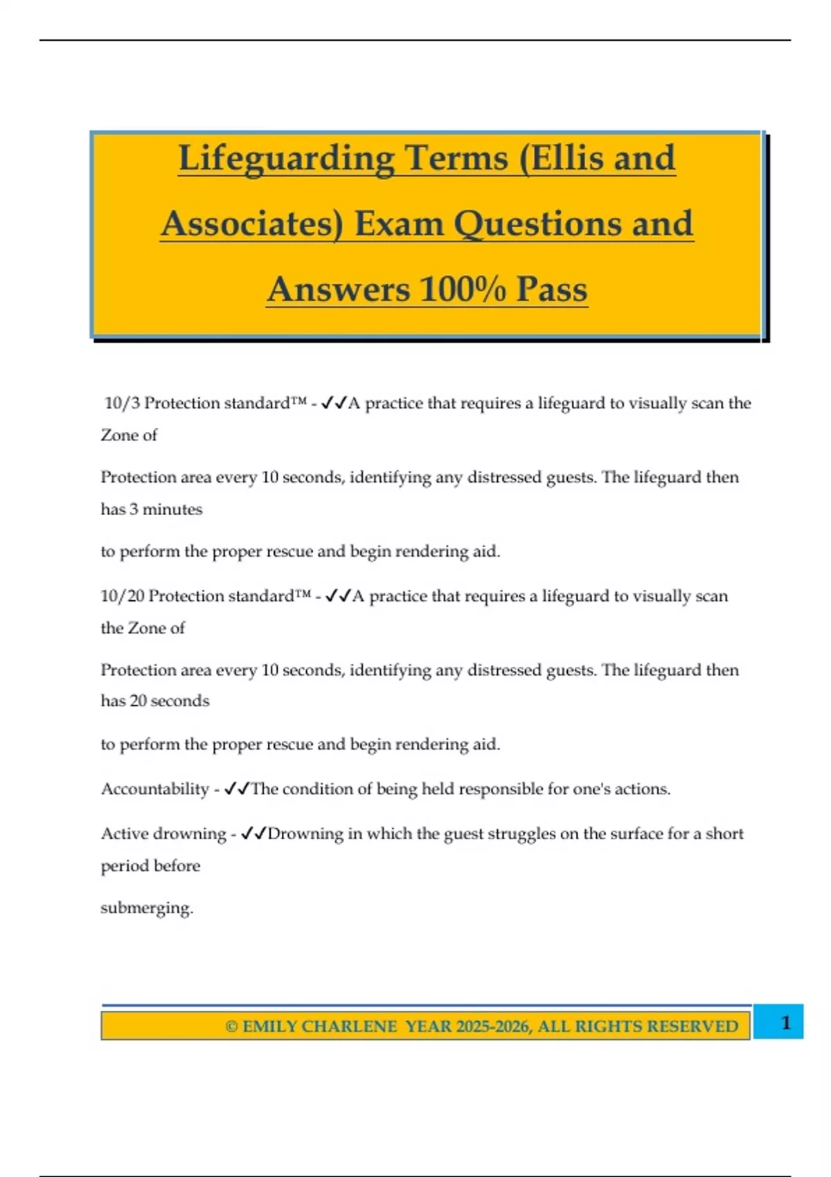 Lifeguarding Terms (Ellis and Associates) Exam Questions and Answers 100% Pass