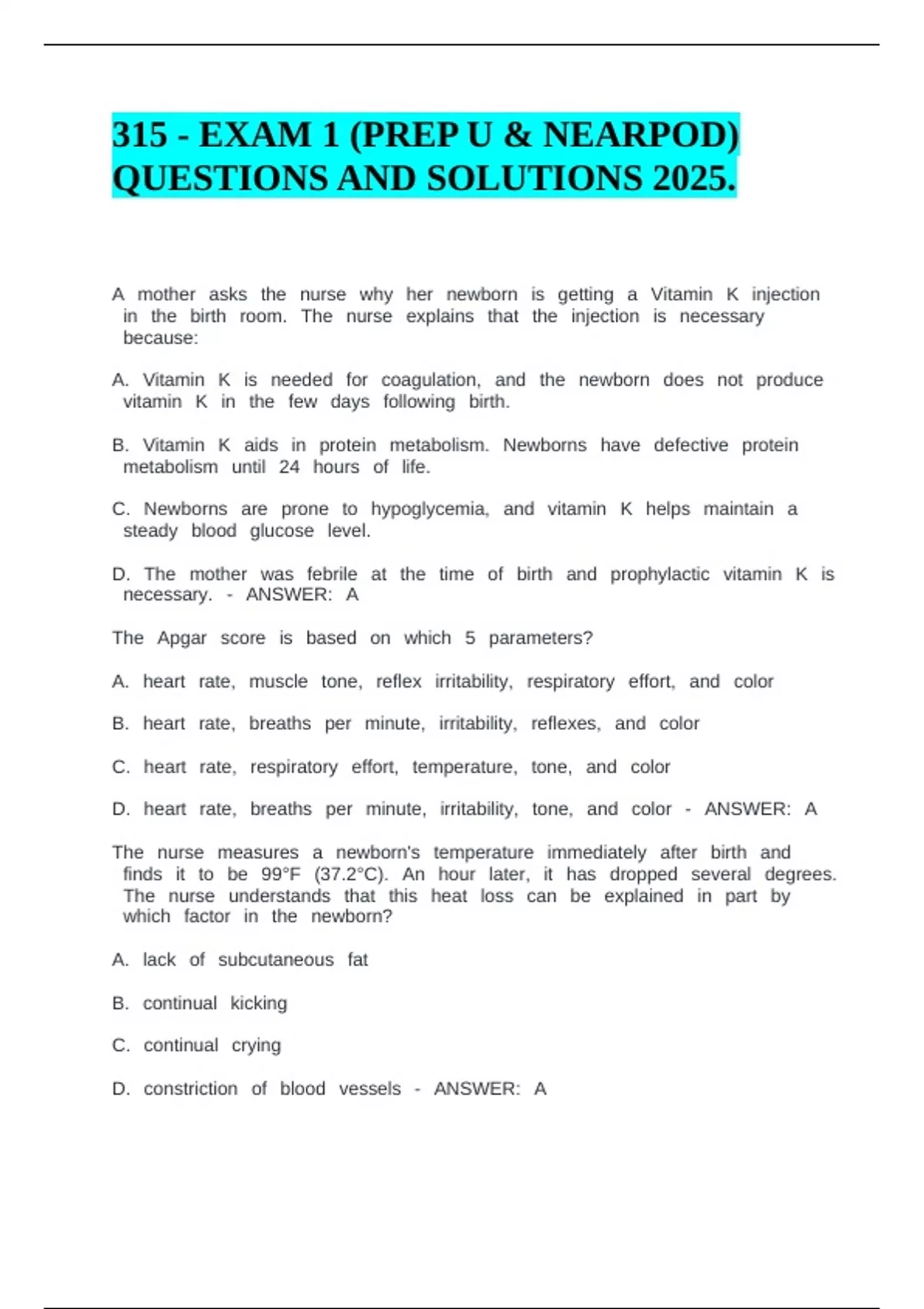 315 - EXAM 1 (PREP U & NEARPOD) QUESTIONS AND SOLUTIONS 2025.