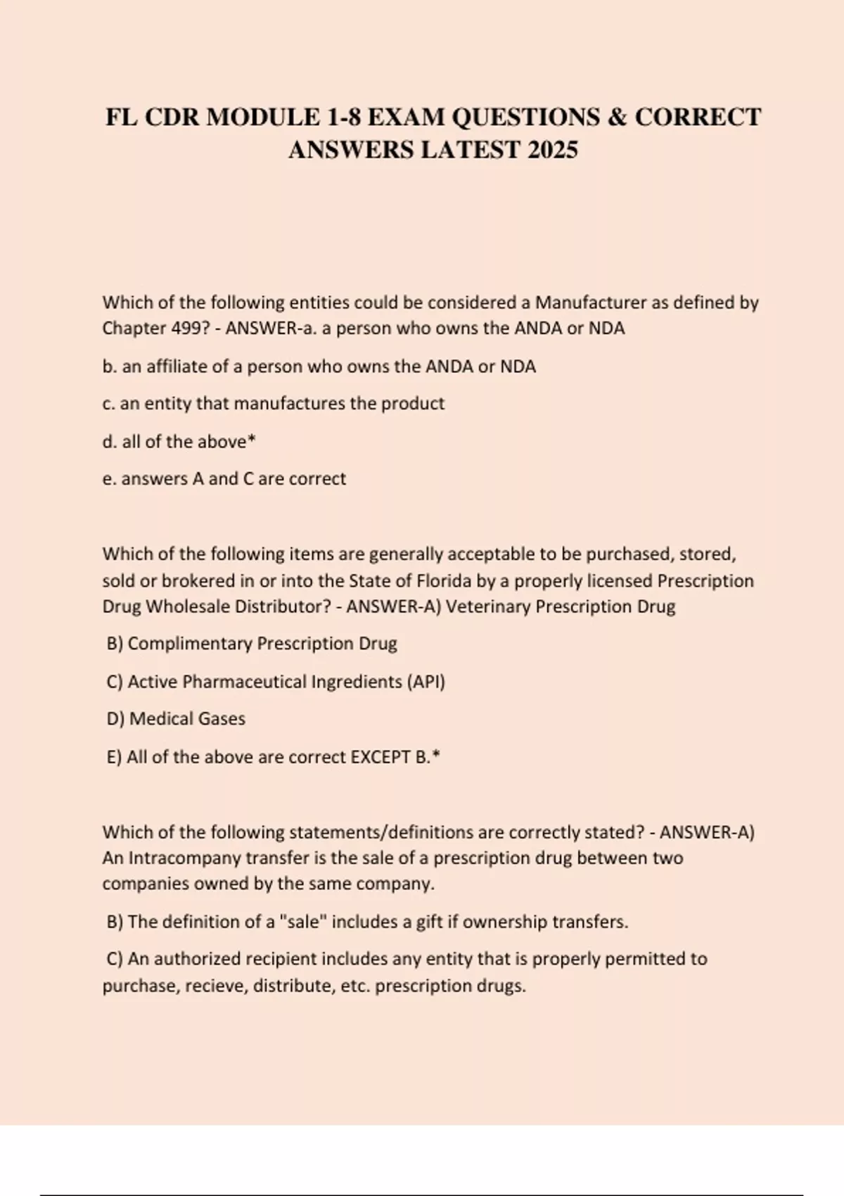 FL CDR MODULE EXAM BUNDLE WITH 2 ITEMS QUESTIONS & CORRECT ANSWERS LATEST 2025