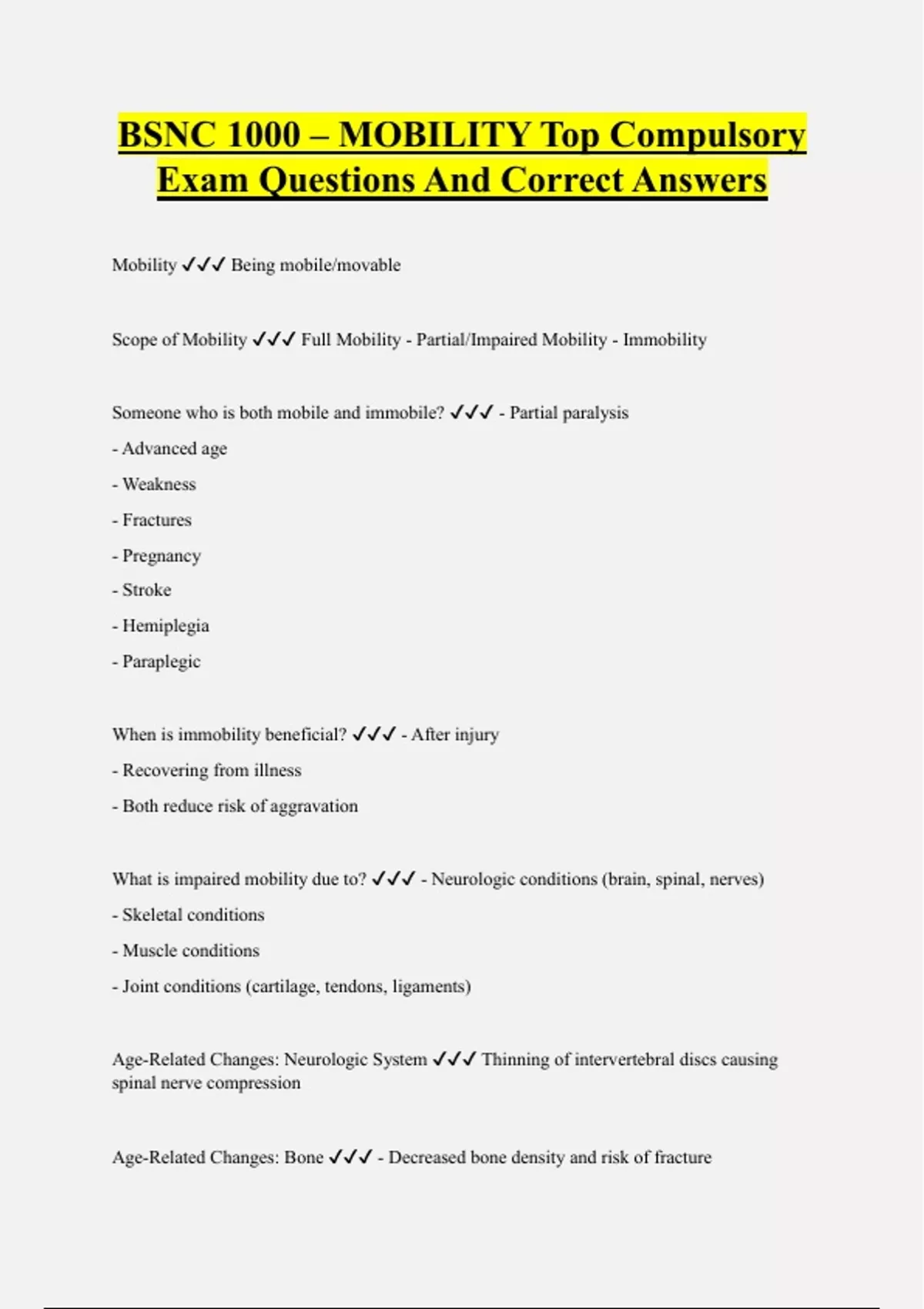 BSNC 1000 Bundled Exam Questions WITH CORRECT Answers