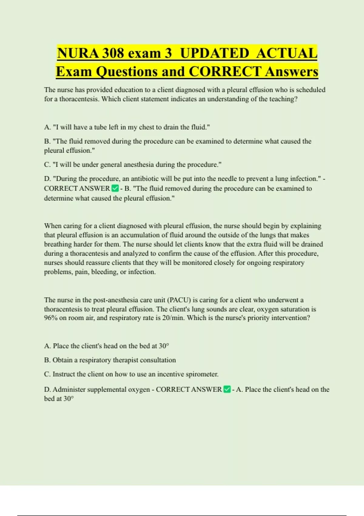 NURA 308 Bundled Exam Questions WITH CORRECT Answers