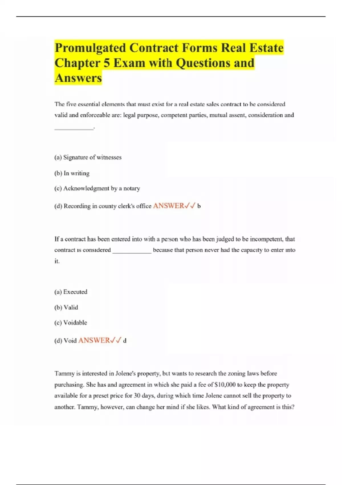Promulgated Contract Forms Exam Study Pool with Questions and Answers Promulgated Contract Forms Exam with Questions and Solutions Promulgated Contract Forms Final Exam with Questions and Answers Promulgated forms Exam 1 with Questions and Answers Promulgated Contracts Exam Study Guide with Questions and Answers Promulgated Contracts Exam Prep with