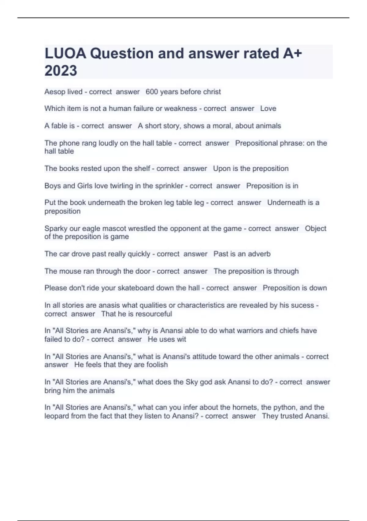 PACKAGE DEAL OF LUO ACTUAL QUESTIONS WITH COMPLETE SOLUTION