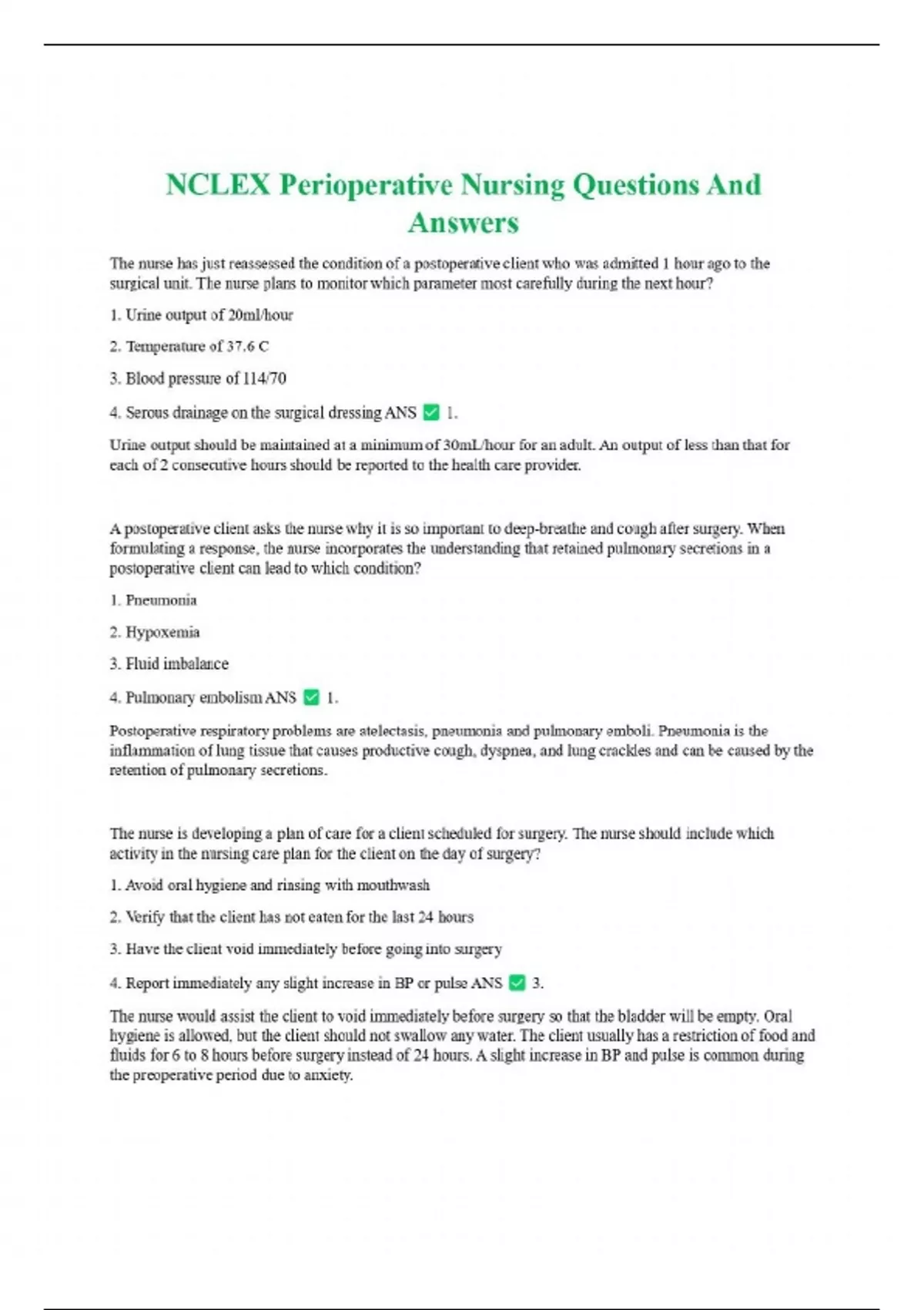 Perioperative Latest Package Deal With Full Course Study Solutions Rated A+ Tests