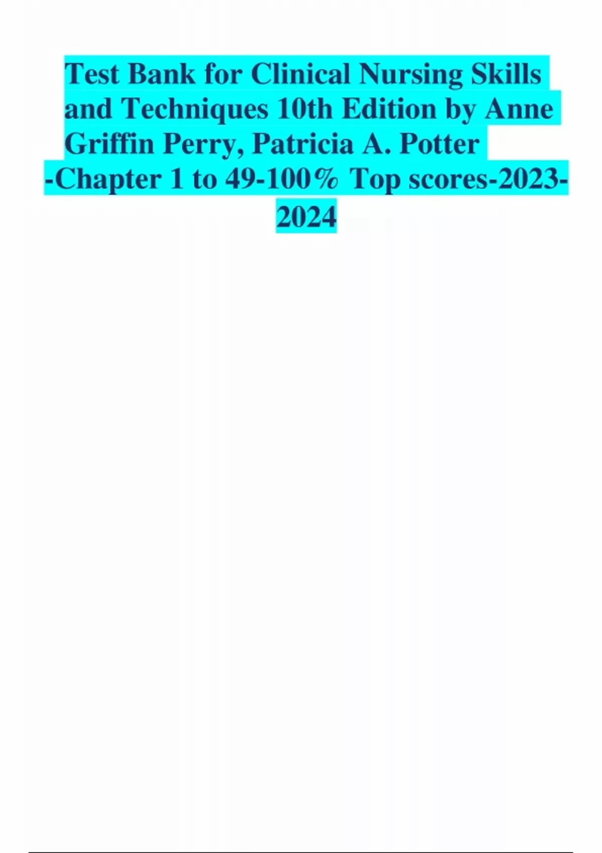 Test bank for clinical reasoning cases in nursing, clinical nursing skills, and techniques, basis for basic and clinical pharmacology.