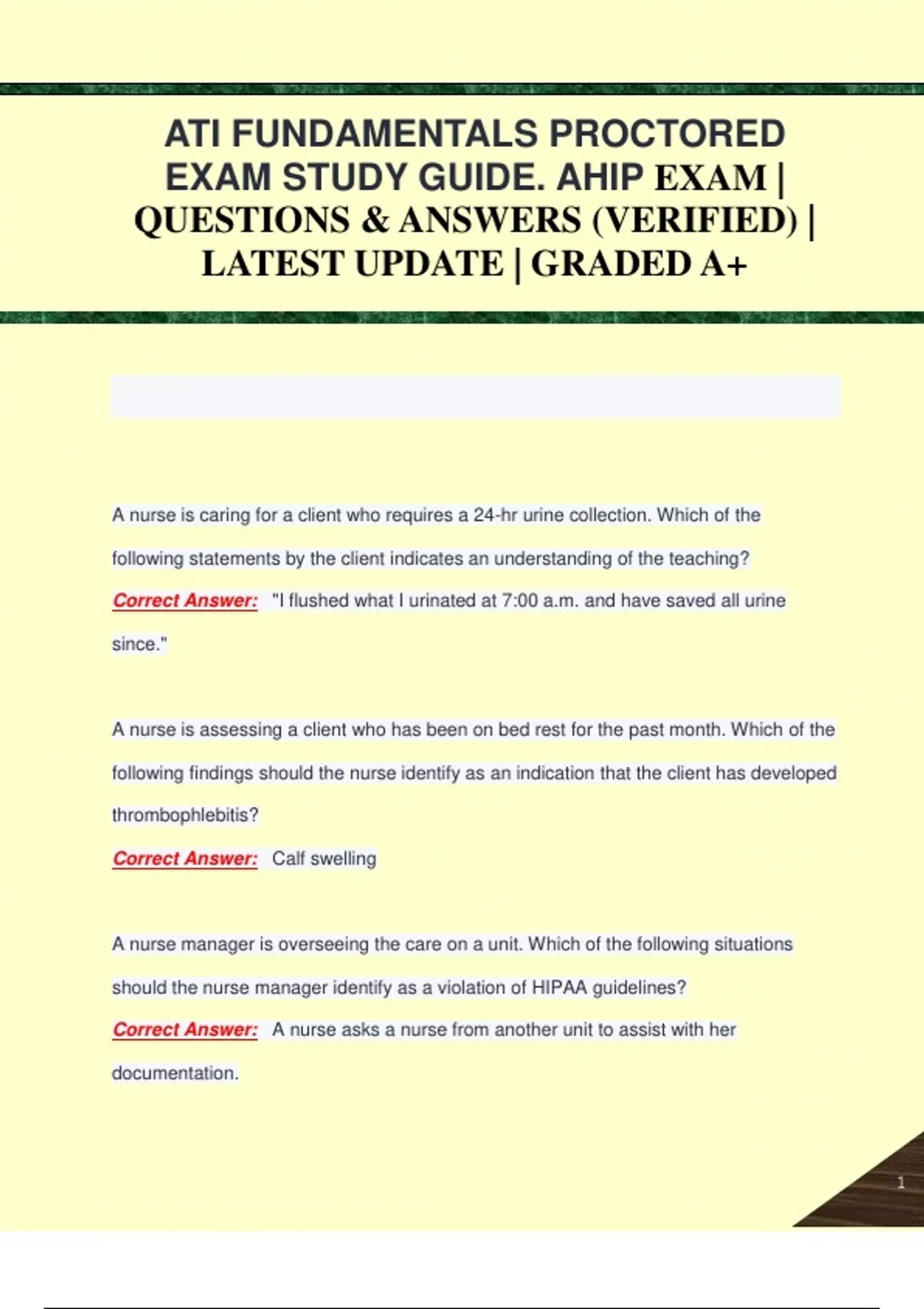 ATI Fundamentals Exam Questions and Correct Detailed Answers (Verified Answers)
