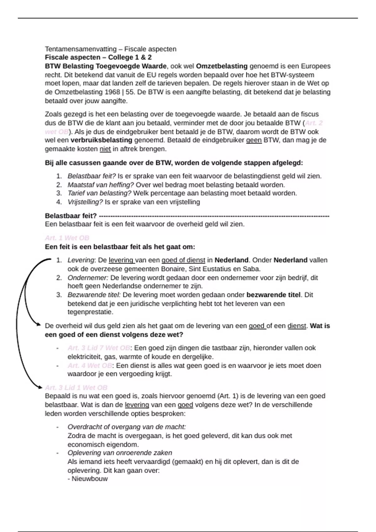 Fiscale aspecten | Tentamensamenvatting | Vastgoedkunde | Poging 1 behaald met een 9!