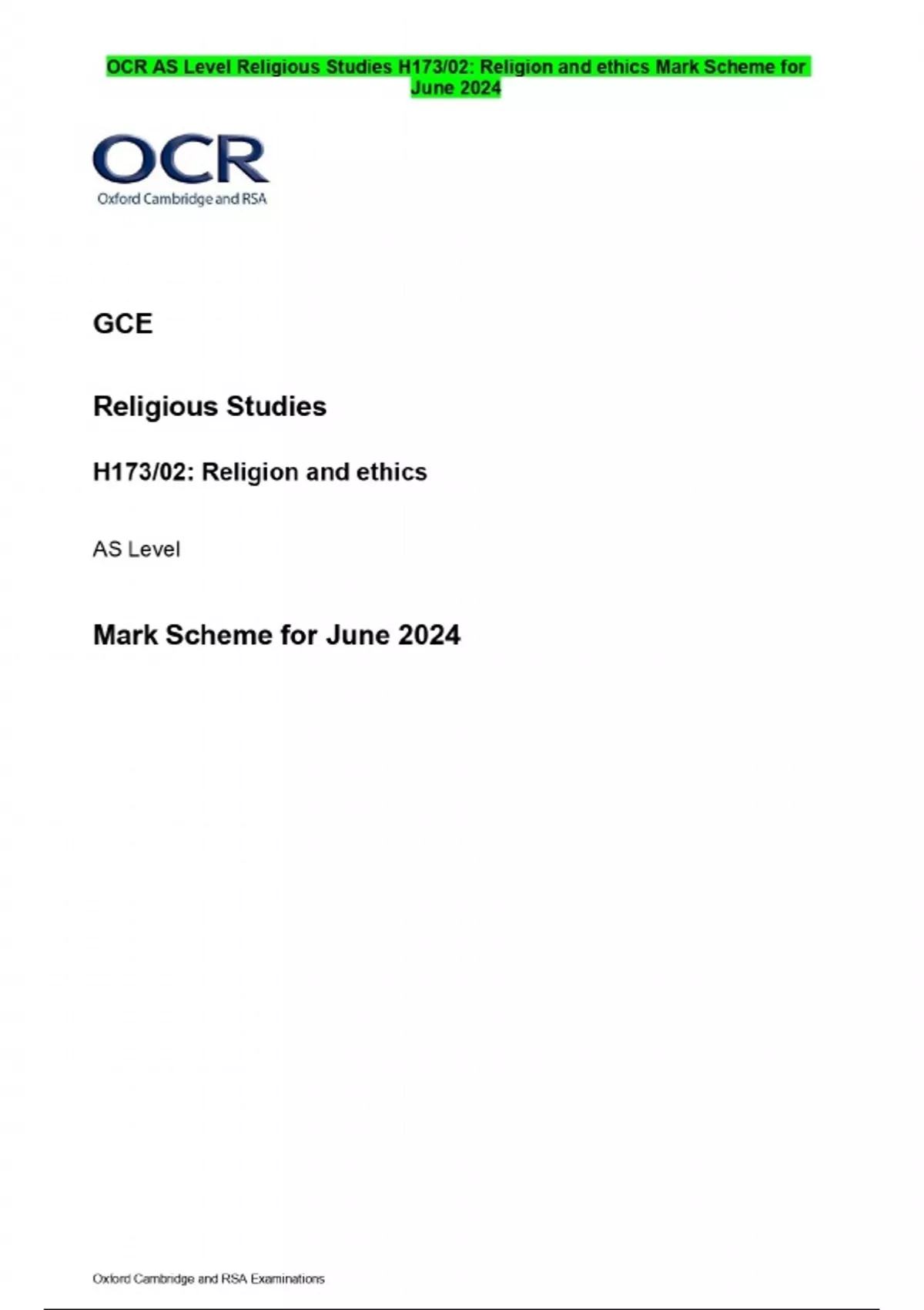 BUNDLE:: OCR AS Level Religious Studies Mark Scheme for June 2024