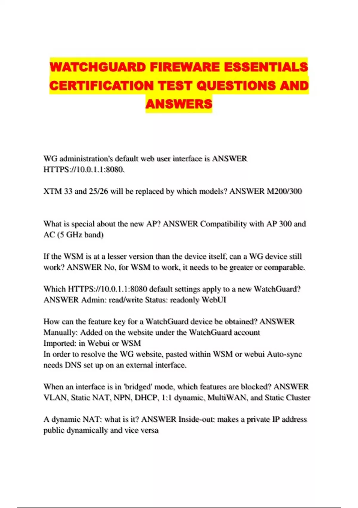 WATCHGUARD FIREWARE ESSENTIALS CERTIFICATION TEST QUESTIONS AND ANSWERS
