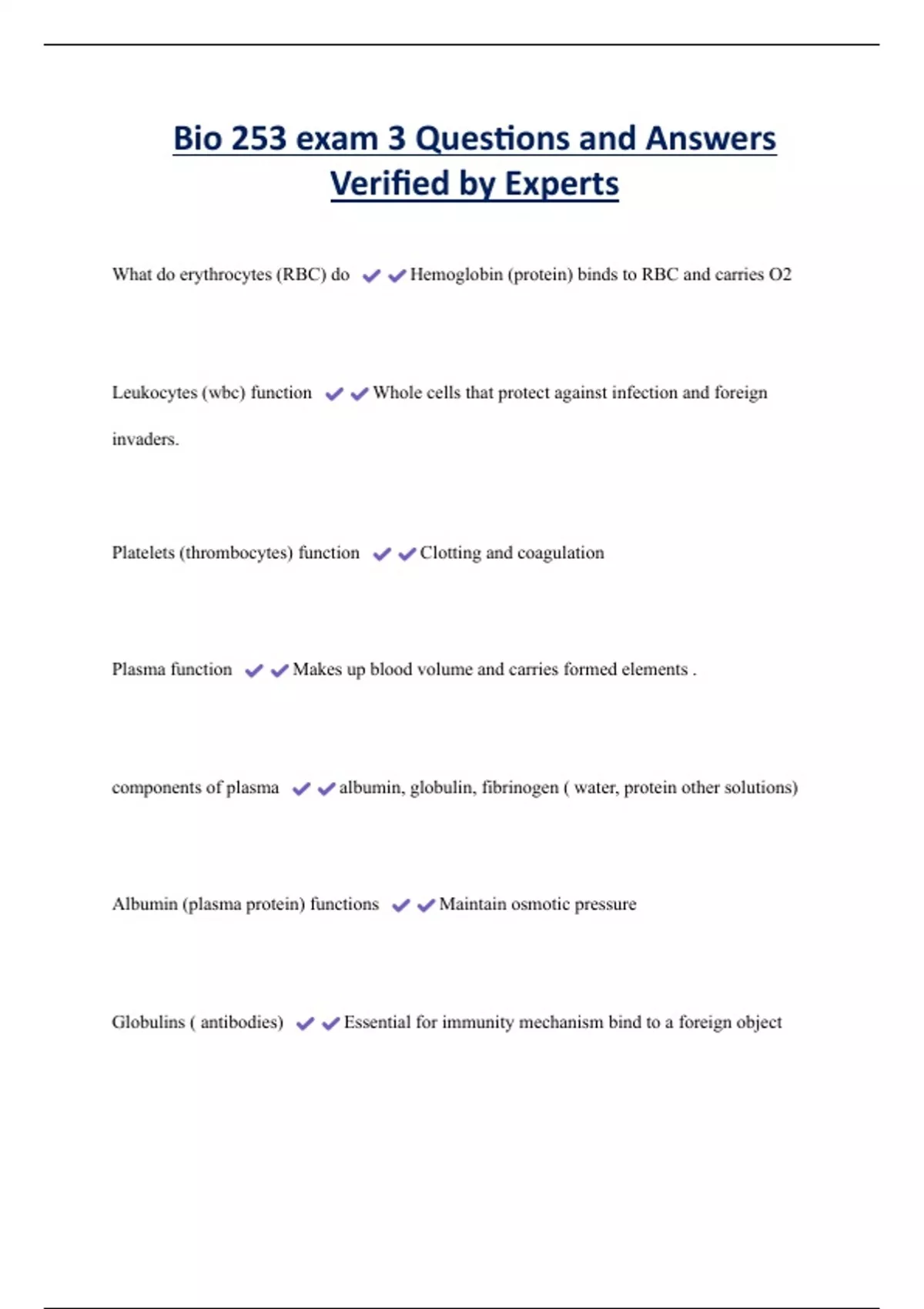 Bio 253 exam 3 Questions and Answers Verified by Experts 2 Exam (elaborations) Bio 253 exam 3 Questions and Answers Verified by Experts 3 Exam (elaborations) BIO 253: Exam 5 Review (Ch. 12-14) Questions and Answers Verified by Experts 4 Exam (elaborations) BIO 253 Hondros Questions and Answers Verified by Experts 5 Exam (elaborations) BIO 253 (