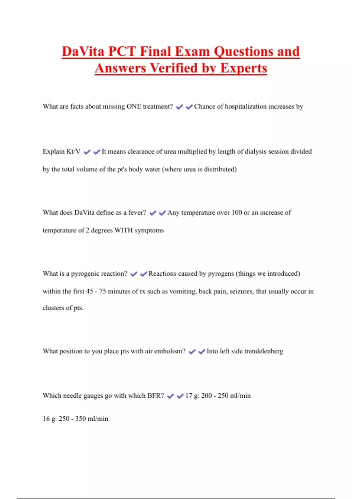 DaVita PCT Final Exam Questions and Answers Verified by Experts 2 Exam (elaborations) DaVita PCT Final Exam Questions and Answers 100% Solved 3 Exam (elaborations) Davita pct final exam 2023/2024 Questions and Answers Verified by Experts 4 Exam (elaborations) Final Exam DaVita (RN) Questions with Correct Answers 5 Exam (elaborations) Davita PCT