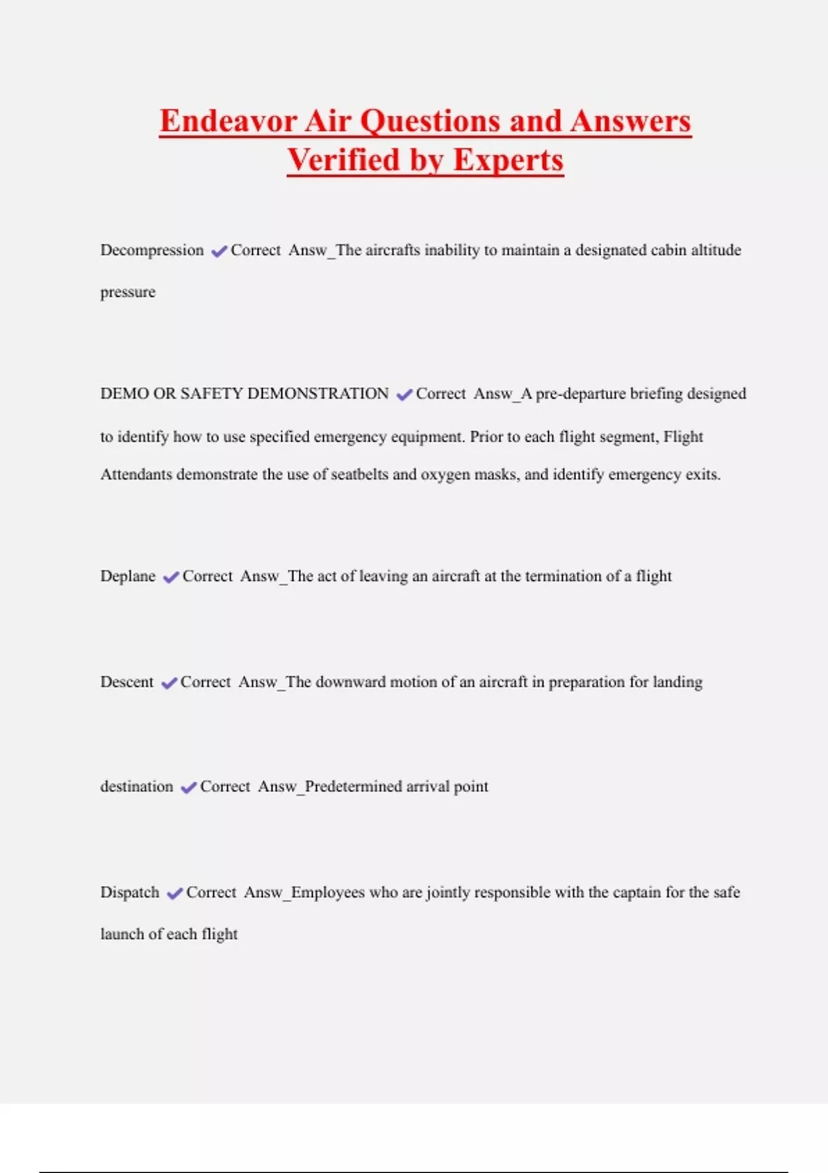 Endeavor Air Questions and Answers Verified by Experts 2 Exam (elaborations) Endeavor CRJ900/700 SYSTEMS (workbook) Hydraulics, Flight Controls, Landing Gear 100% Accurate 3 Exam (elaborations) Endeavor CRJ900/700 SYSTEMS (workbook) Powerplant, Fuel, Fire Questions with Correct Answers 4 Exam (elaborations) Endeavor Air CRJ 900 Systems Study Gui