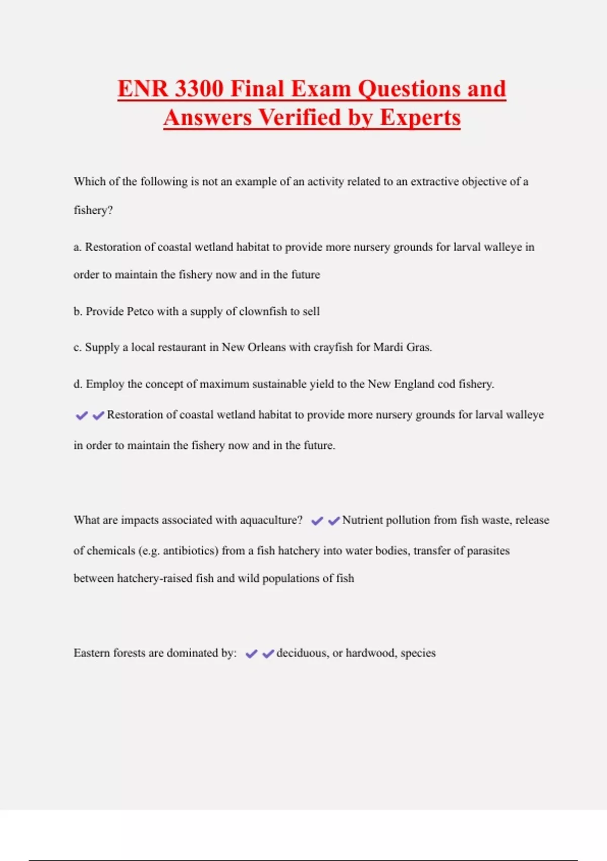 ENR 3300 Exam 2 Questions and Answers 100% Solved 2 Exam (elaborations) ENR 3300 Final Review Questions and Answers 100% Solved 3 Exam (elaborations) ENR 3300 Questions with Complete Solutions 4 Exam (elaborations) ENR 3300 Final Exam Questions and Answers Verified by Experts