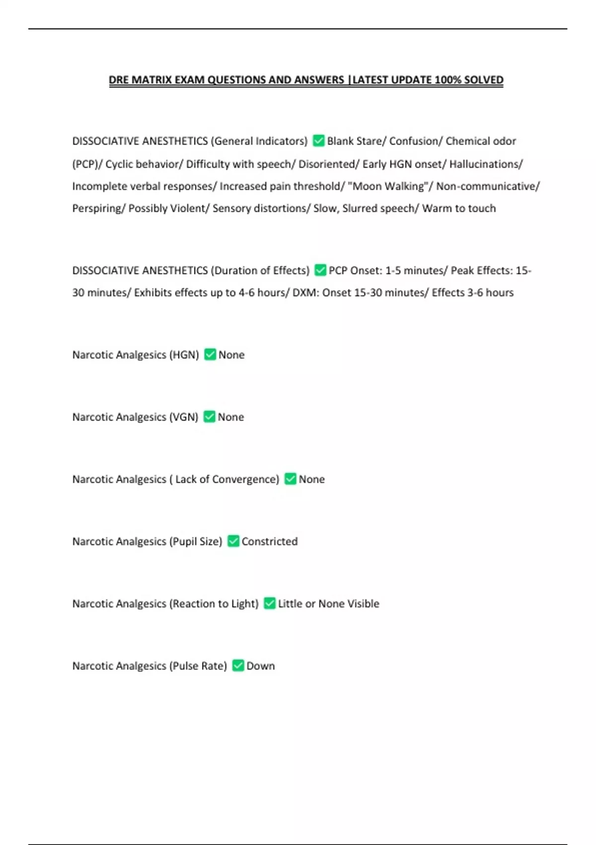 DRE TRAINING | QUESTIONS AND ANSWERS 2025/2026 LATEST UPDATE 100% SOLVED 25 Exam (elaborations) DRE VOCAB| QUESTIONS AND ANSWERS 2025/2026 LATEST UPDATE 100% SOLVED 26 Exam (elaborations) LAPD DRUG RECOGNITION EXPERT (DRE) 2025 | COMPLETE QUESTIONS AND ANSWERS 2025/2026 LATEST UPDATE