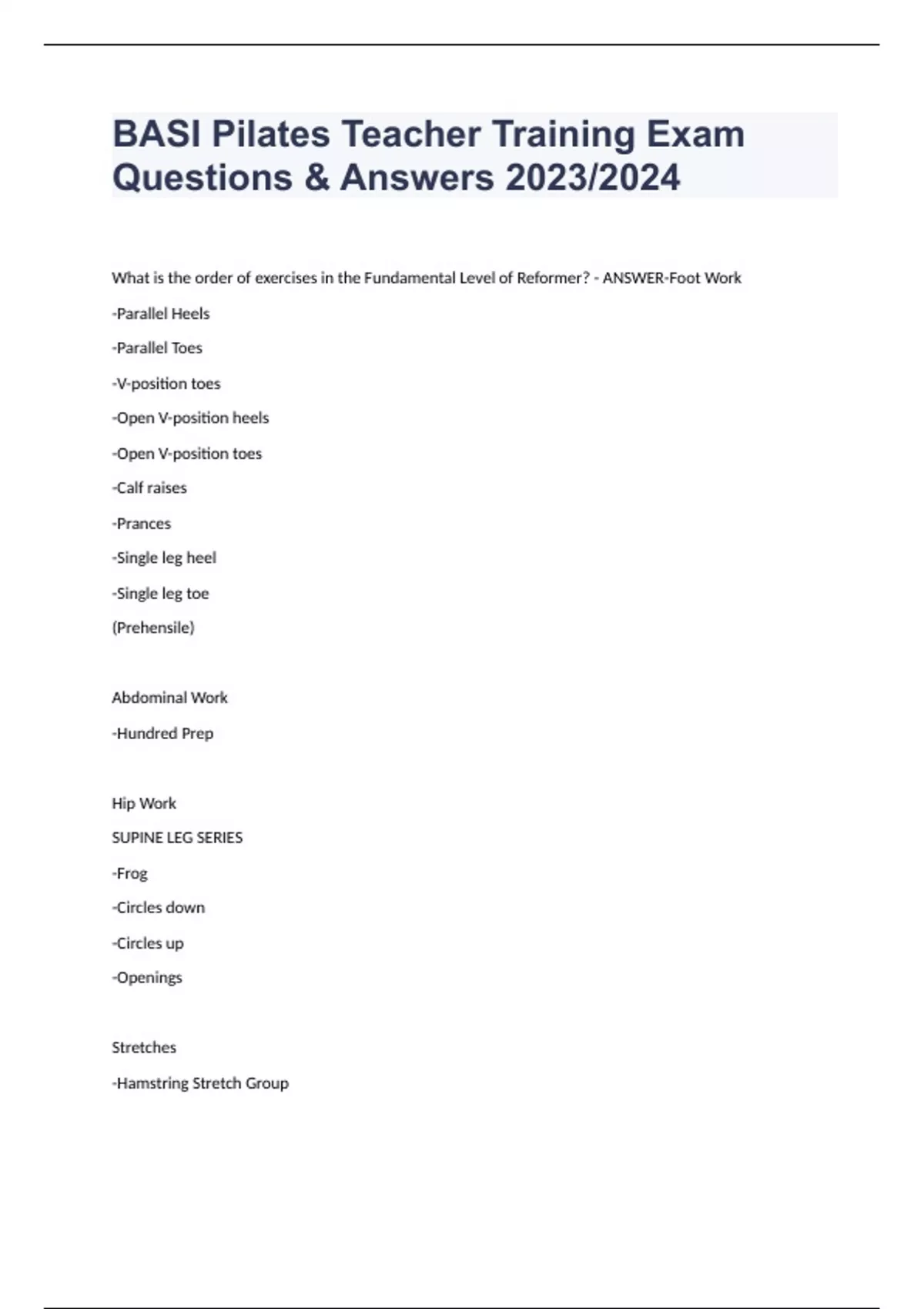 BASI Pilates Teacher Training Exam Questions & Answers 2023/2024