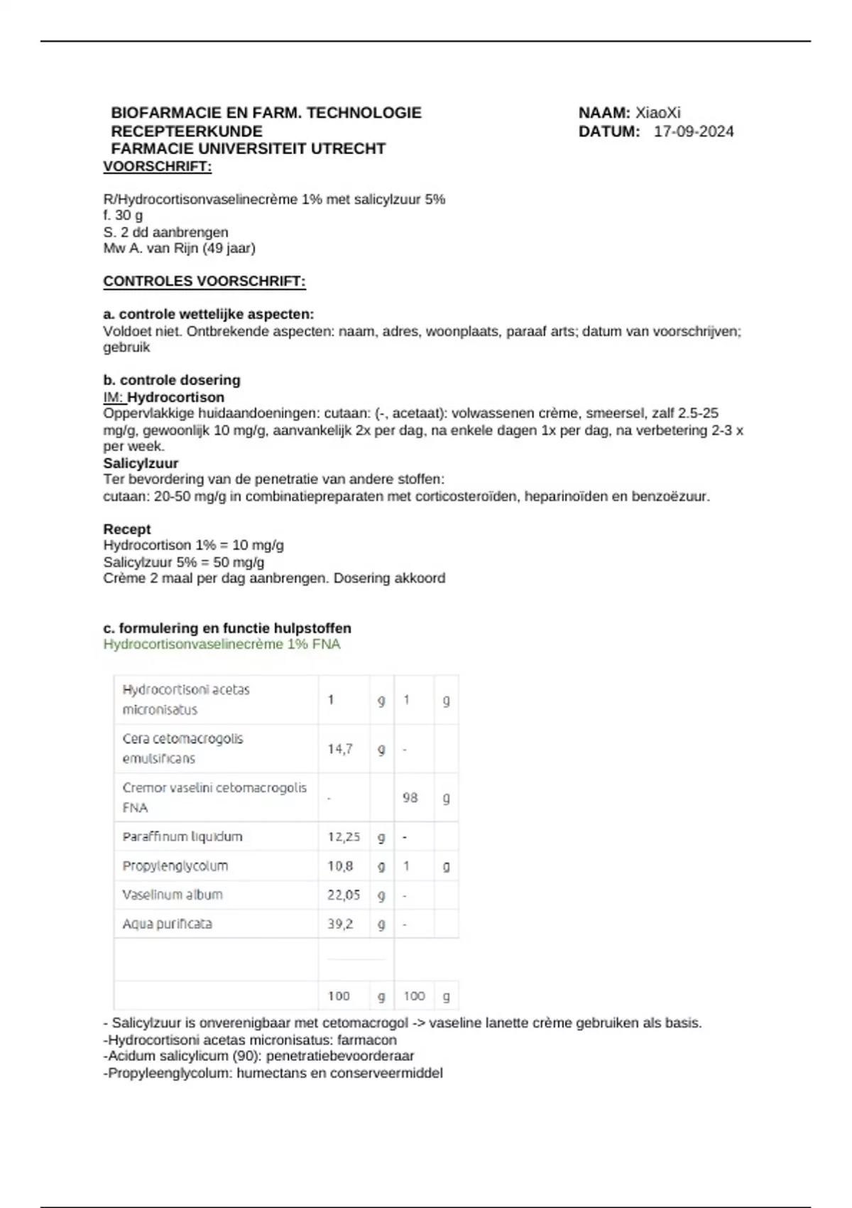 FA-MA103 dermale preparaten cbv's die tijdens de OB en op een tentamen cbv gegeven worden.