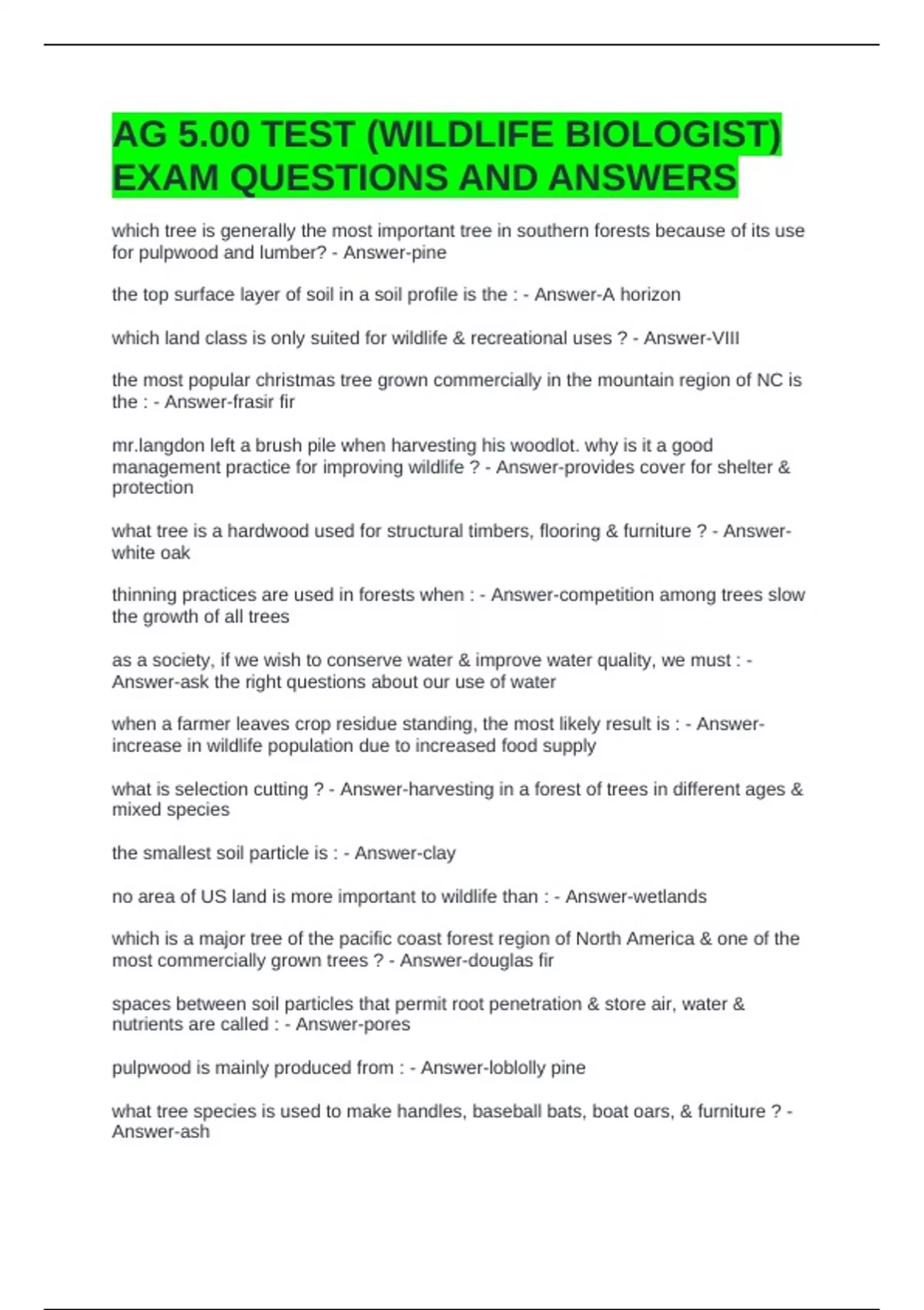AG 5.00 TEST (WILDLIFE BIOLOGIST) EXAM QUESTIONS AND ANSWERS