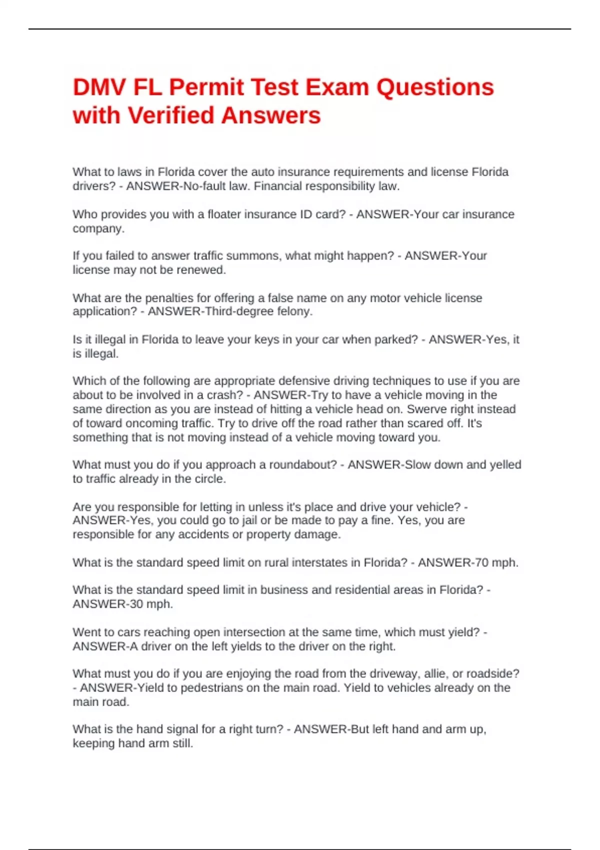 Exam (elaborations) Study Guide for Florida Permit Test Q&A Exam (elaborations) Permit Test Study Guide 2024 Questions and Answers Exam (elaborations) Florida Permit Test Study Fines and Limits Questions and Answers Exam (elaborations) Florida Permit Test Practice (Class E Driver's License) Exam Questions with Correct Answers Exam (elabora