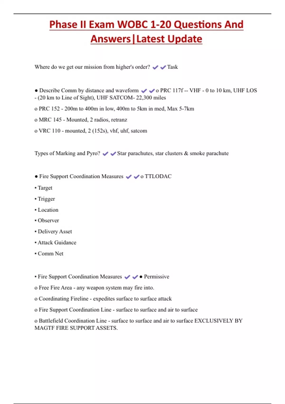 WOBC Exam 1 Questions And Answers|Latest Update 2 Exam (elaborations) WOBC Phase 3 Exam Questions And Answers|Latest Update 3 Exam (elaborations) Phase II Exam WOBC 1-20 Questions And Answers|Latest Update