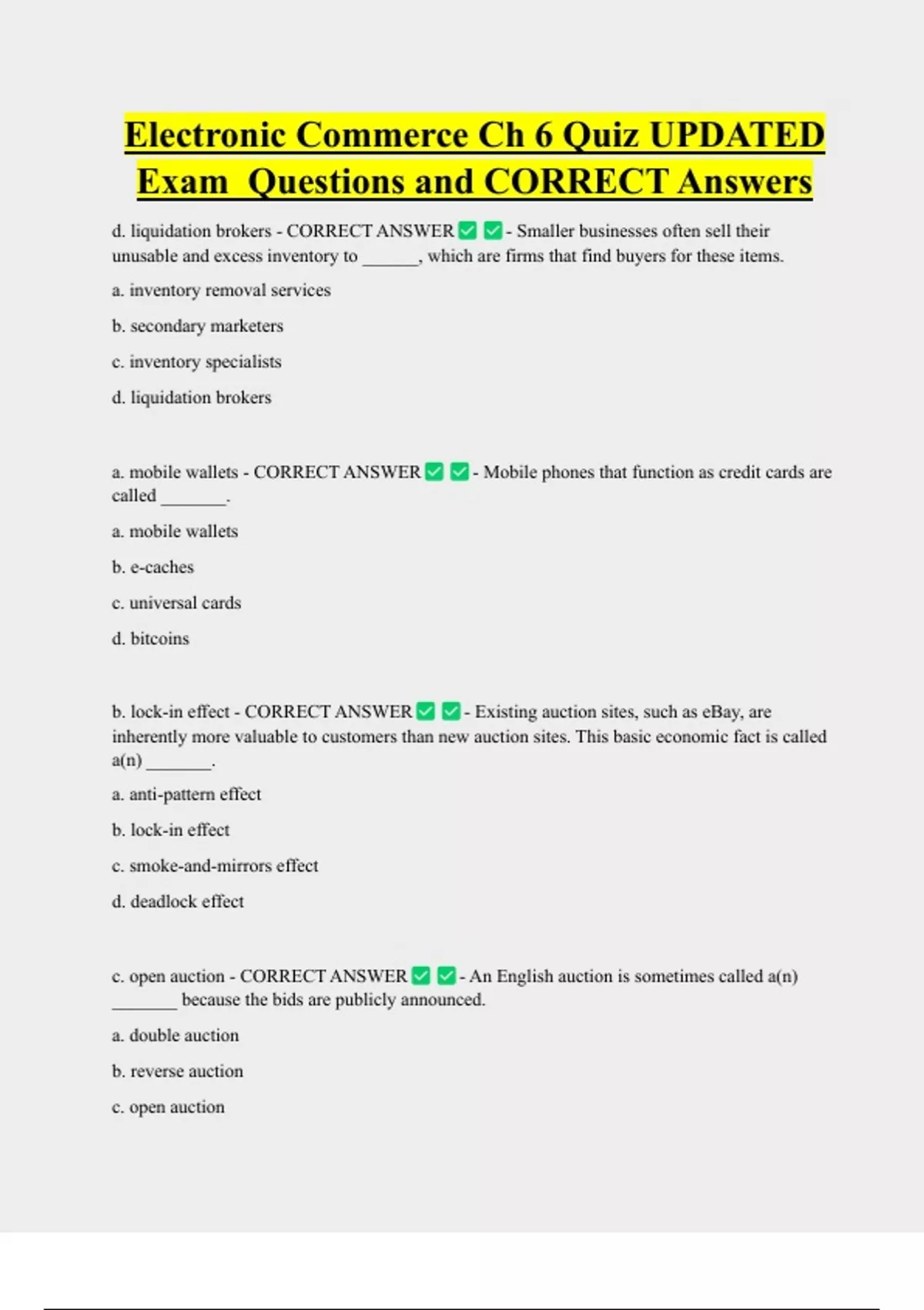 Electronic Commerce Bundled Exam Questions WITH CORRECT Answers