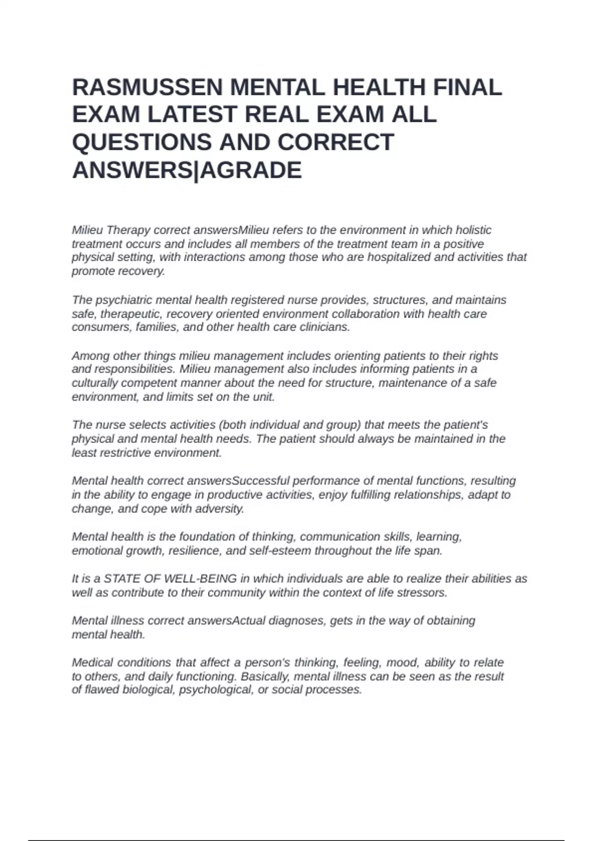 RASMUSSEN MENTAL HEALTH BUNDLED EXAMS 1WITH CORRECT ANSWERS 2025