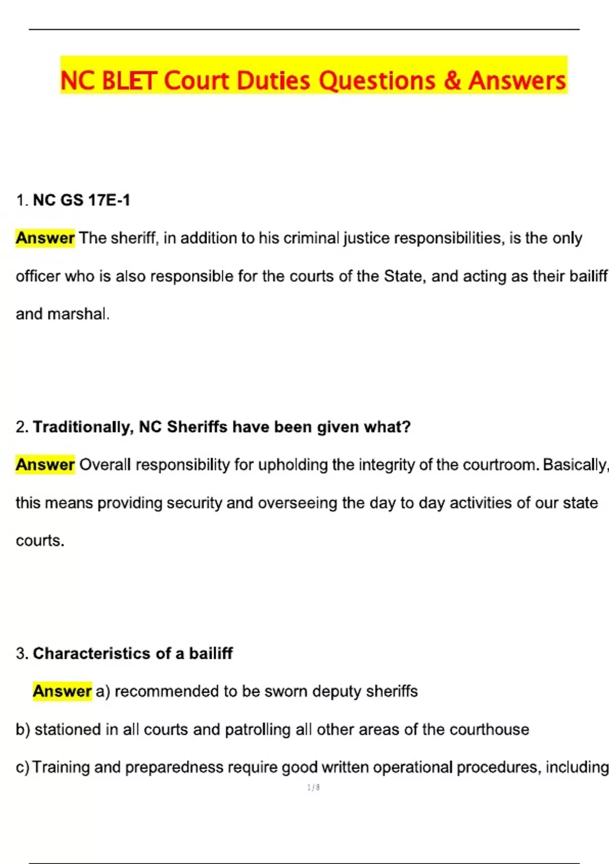 NC BLET ACTUAL EXAMS BUNDLED NC BLET STATE FINAL EXAM NEWEST 2025 ACTUAL EXAM 2025 NC BLET Civil Process (Latest 2025 / 2026 Update) Questions and Verified Answers | 100% Correct | Grade A+. NC BLET exam 2025 civil process questions and answers. Free download NC BLET court duties study guide. NC BLET training objectives