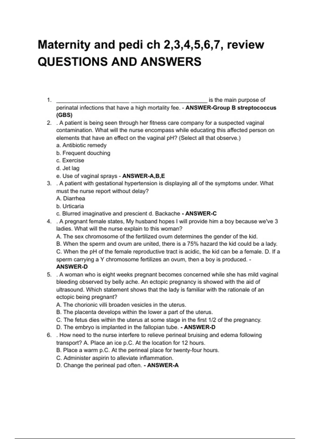 Maternity and pedi ch 2,3,4,5,6,7, review QUESTIONS AND ANSWERS
