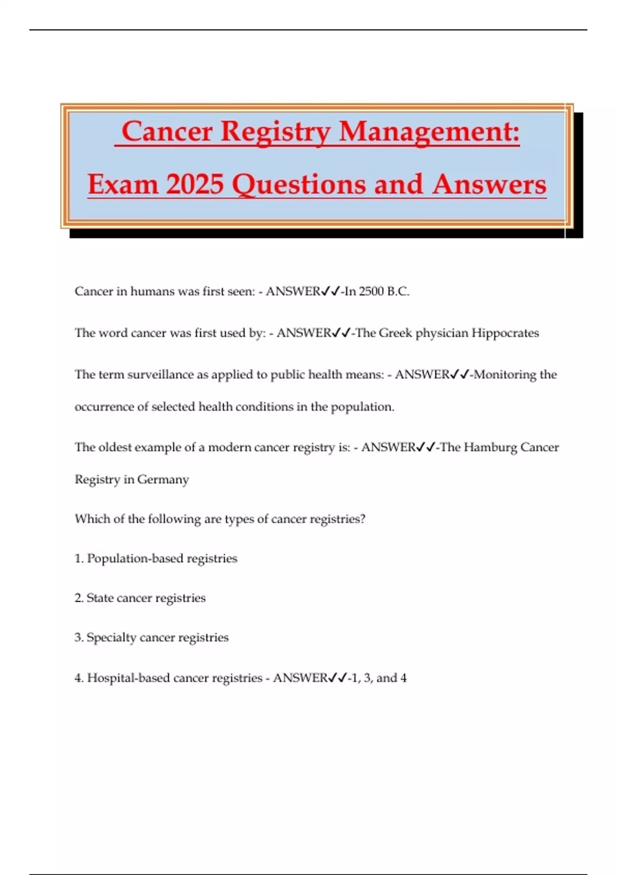 Cancer Registry Bundled Exams 2025 Questions and Answers