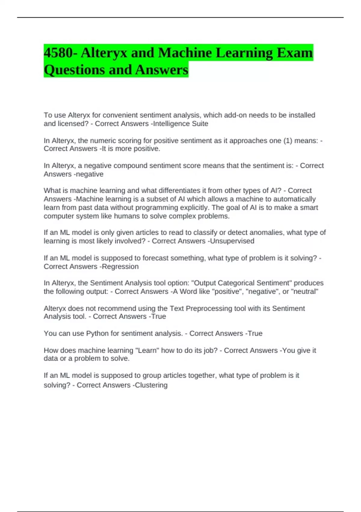 1 Exam (elaborations) Alteryx Review Exam Questions and Answers 2 Exam (elaborations) Alteryx Preparation Tools Exam Questions and Answers 3 Exam (elaborations) Alteryx Partner Server Implementation Certification Exam 2025 Questions and Answers 4 Exam (elaborations) Alteryx Level 1 Cert Test with 100% Verified solutions 5 Exam (elaborations) Al