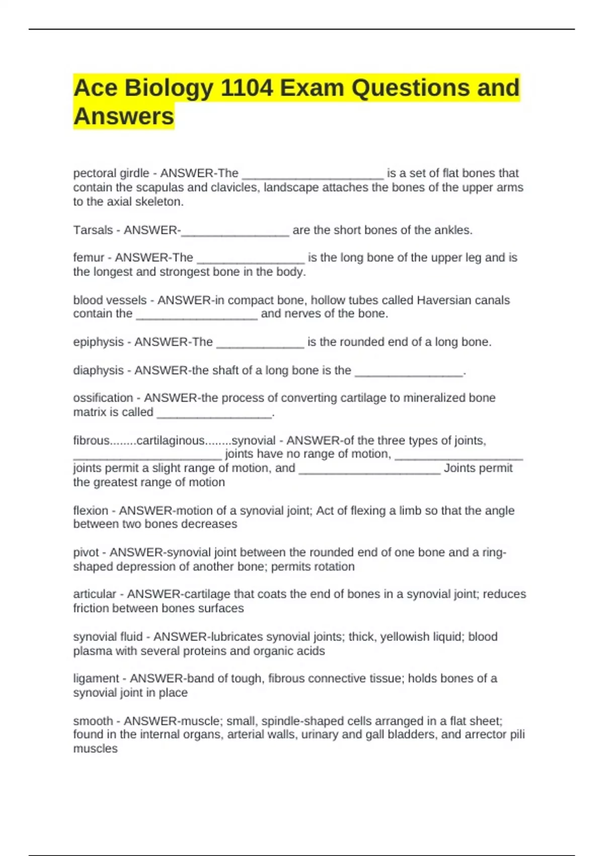 Biology 1104 Complete Solutions