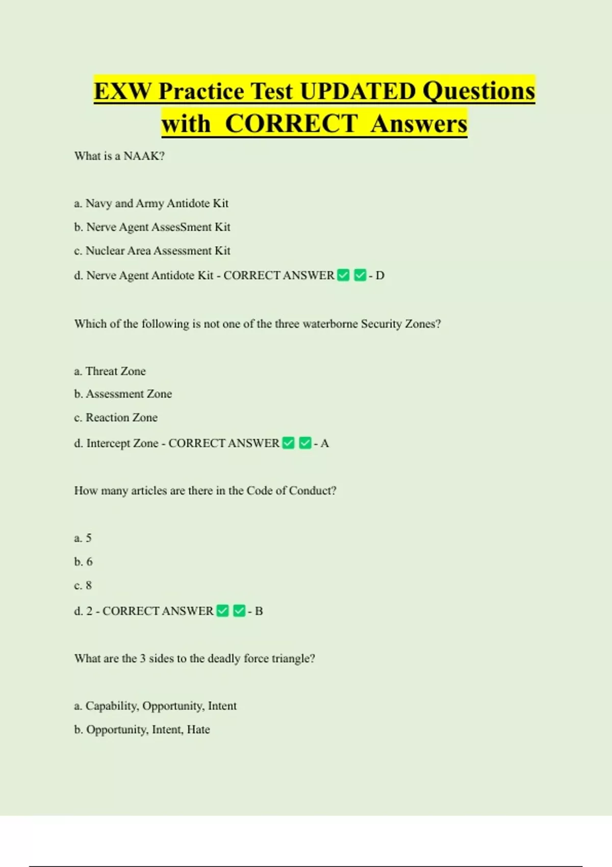 NAVY EXW STUDY GUIDE UPDATED Exam Questions and CORRECT Answers