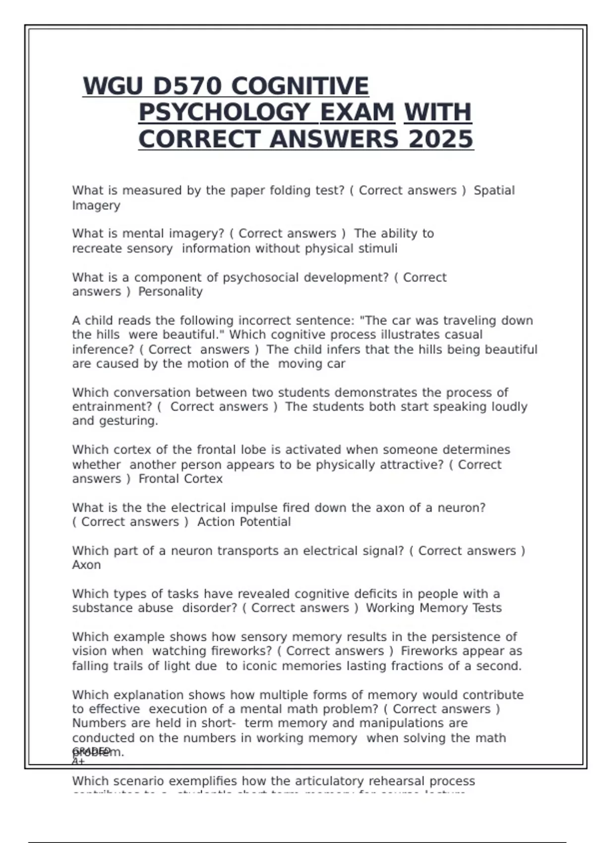 WGU D570 COGNITIVE PSYCHOLOGY ASSESSMENT GUIDE EXAM WITH CORRECT ANSWERS 2025 API 570 EXAM WITH CORRECT ANSWERS 2025